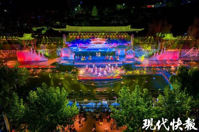 《遇见西游》以声、光、电等多种技术为辅助,结合真人表演、游船布景、视频投影等多元表现形式,在盐河巷全街打造出一条“西游之路”。9月25日—10月6日,每晚持续50分钟,再现原版音乐、妆造与剧情,通过舞蹈、武打、互动等环节,带领观众沉浸于“蟠桃盛会”“大闹天宫”“取经之路”等经典段落之中。