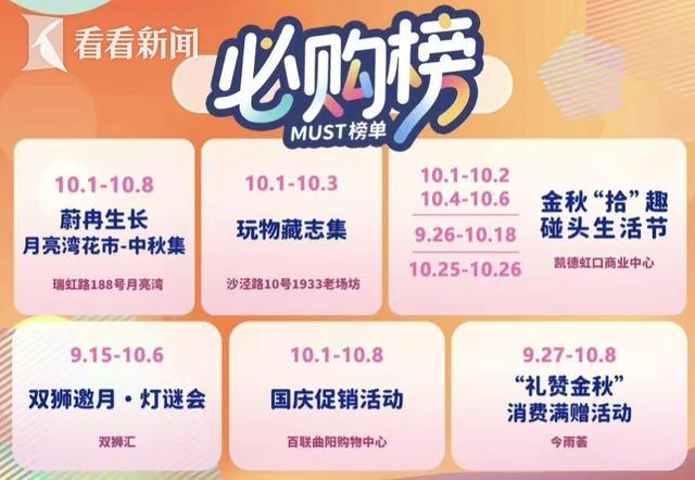 必购榜上,北外滩、四川北路和瑞虹等三大商圈一起发力,各种集市、促销活动是买买买的好去处。