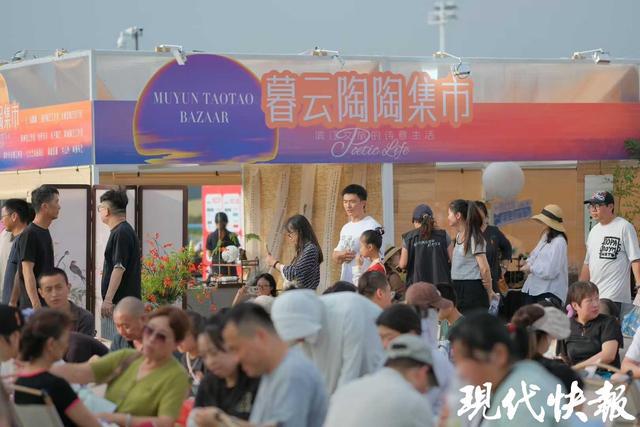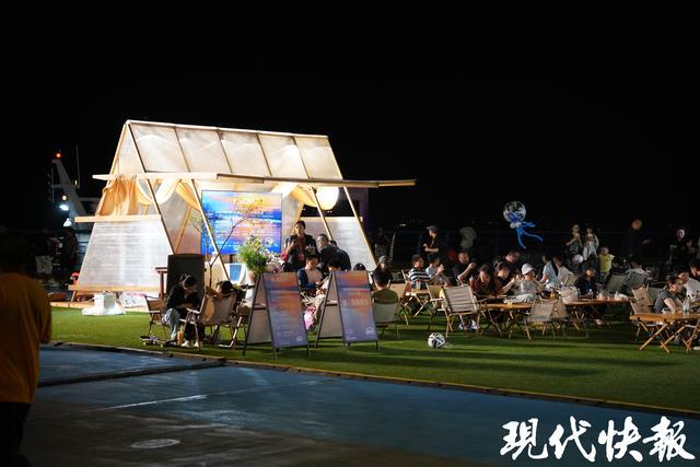 当天下午,南通长江体育公园就已经热闹了起来。现场设置文旅场景展示区、城市美学生活区、户外露营休闲区等8大展区,汇集全市各县(市、区)精品文旅资源和100余家品牌商户,覆盖“吃住行游购娱”全领域。在落日时分,骑上单车追金色夕阳,搭起帐篷听虫鸣晚风,喝上一口啤酒或是特调咖啡,品尝网红美食和南通各地特色小吃,成为市民游客打开假期的全新方式。