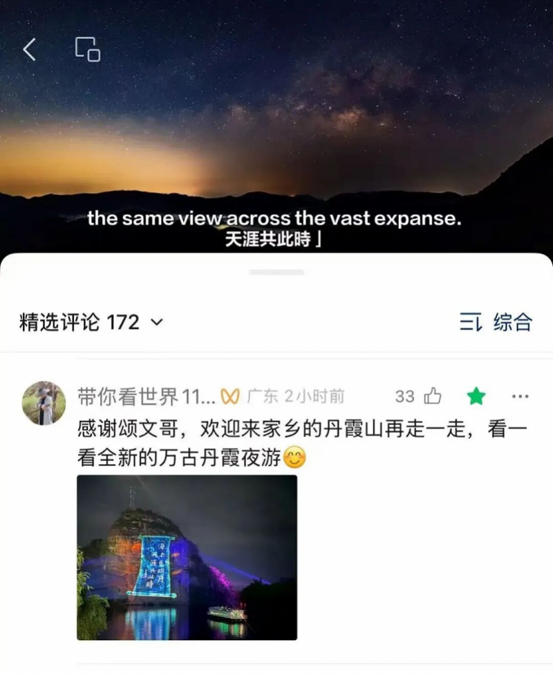 丹霞山夜游火爆出圈,还有不少热情的网友向张颂文强烈安利。