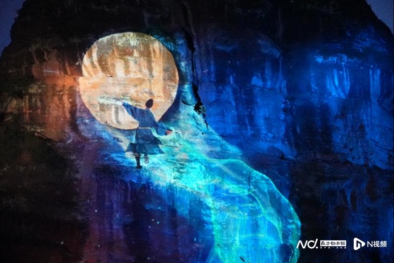 丹霞山新近推出的“万古丹霞”大型山水实景光影秀成为景区夜间最大亮点,4号当晚接待游客1300多人。作为首个以世界自然遗产为主体的夜游产品,光影秀以丹霞山5公里山水实景为空间,巧妙运用岭南画派、粤绣等多种文化元素为设计灵感来源,通过灯光、投影等顶尖科技手段,在近岸、崖壁、远山及船上载体打造出7大场景与28个景观效果。