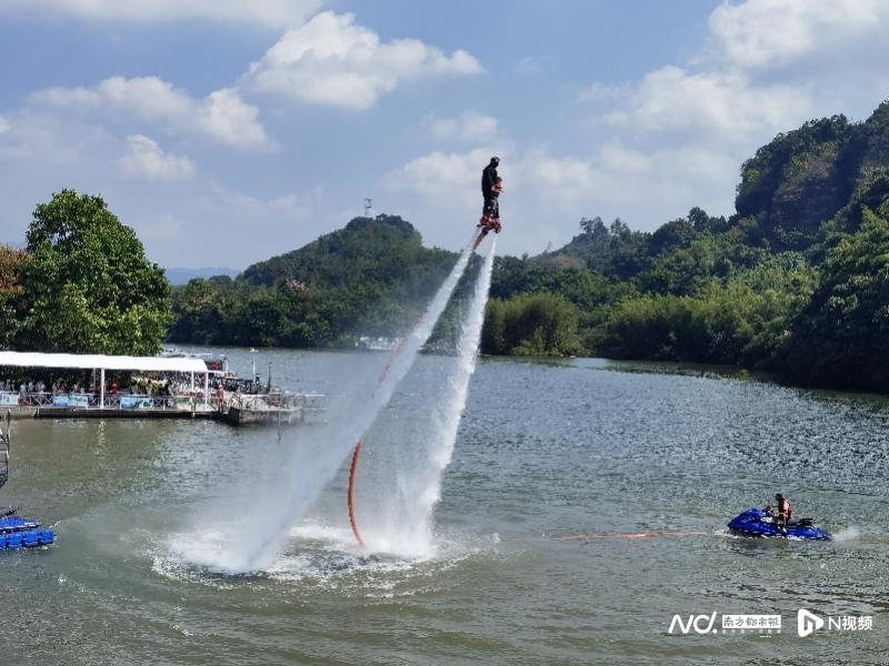 今年国庆,丹霞山精心布置了国庆、中秋主题打卡点和地质研学营互动点,并上线了桨板、水上陀螺、水上飞人等多个水上项目,吸引了不少游客前来体验。