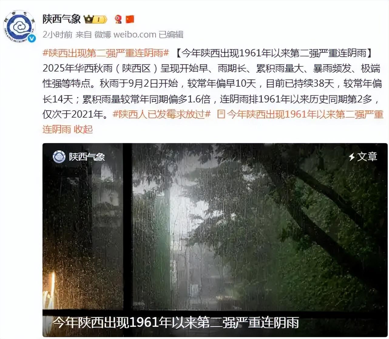 连续下了多少天的雨,我已经不记得了,反正似乎过了夏天,还没享受秋高气爽的天气呢,就一直下雨气温骤降冷得穿起了秋裤。看了专业解释,今年陕西是自1961年以来第二强的严重连阴雨天气。
