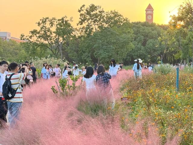 上海交通大学剑川路校区生态林里的粉黛乱子草也开得正盛,吸引了大学生和不少市民前往拍照打卡。