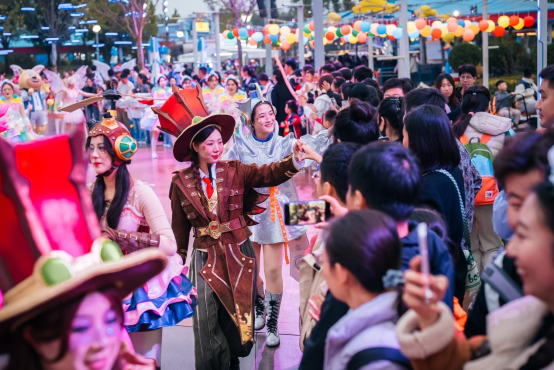 花样演艺欢乐巡游上演 主题夜场梦幻焰火回归