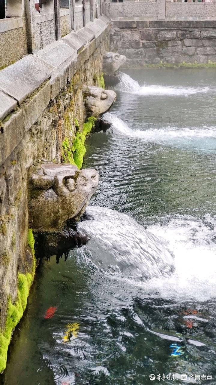 伴随着水位攀升,黑虎泉泉水喷薄如雷、气势磅礴。三尊石雕兽首口中,泉水如银练般腾空跃起,喷涌力度远胜往日。伴随阵阵轰鸣,水声似虎啸山谷般雄浑,即便站在数米之外,也能清晰感受到水汽氤氲的清凉,仿佛整个人都被这份泉脉的活力包裹。