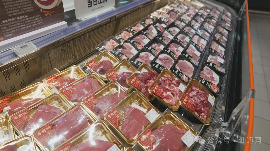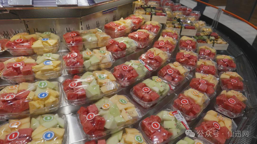 生鲜板块同样亮点纷呈,全方位贴合不同客群需求。在果蔬区域,一方面主推金枕榴莲、秋月梨等时令大品,依托“苹果、香蕉、柚子”三件套树立亲民价格形象;另一方面大力发展鲜切果盒、广西酸野等趋势商品,鲜切果切堆头醒目且均贴上赏味标签,精准吸引年轻消费群体。蔬菜区则通过强化“蔬菜六件套”民生品引流,同时搭建“有机菜、闽北高山菜”等八大品质矩阵,还特别打造柳叶空心菜等本地化商品,形成差异化经营优势,满足消费者对蔬菜品质与多样性的追求。