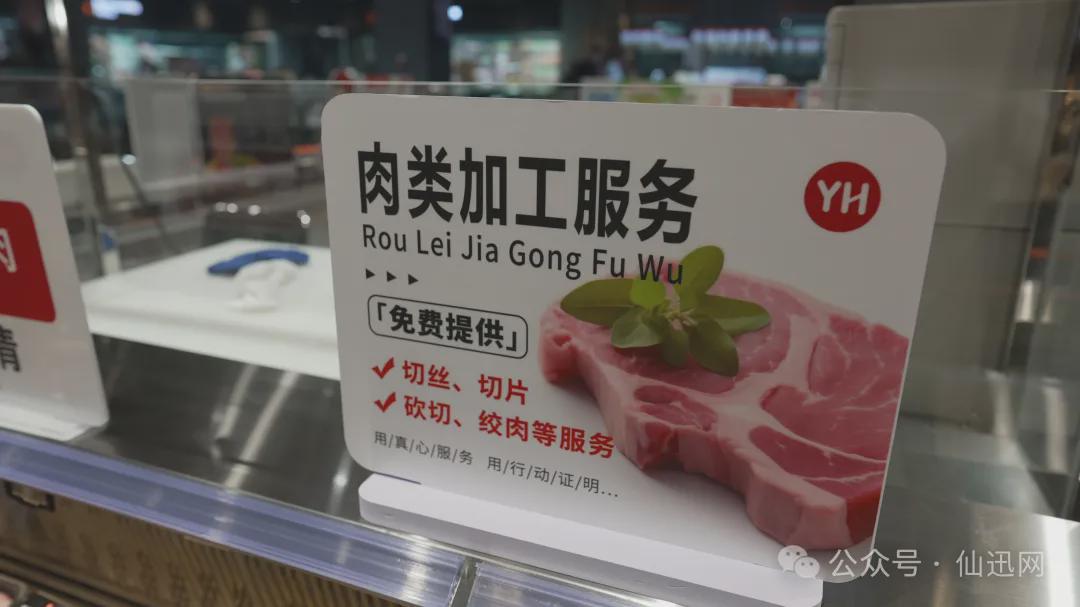 服务升级是此次“胖东来模式”落地的重要体现,从基础服务到特色项目,再到便民举措,全方位关照顾客需求。常规服务上,延续了砍肉、杀鱼、水果清洗等贴心项目;特色服务方面,创新推出购买清远走地鸡免费代烤、调理牛排与法式羊排免费现煎等项目,服务台上“免费代烤”“免费现煎”的标注清晰可见。此外,水果果切区根据甜度编号为顾客推荐品尝顺序,各生鲜区域均提供试吃服务,让消费者在购买前能充分体验商品品质。便民服务区更是配备了丰富项目,身高体重测量、血压检测、直饮水、微波炉加热等十个基础项目一应俱全,还提供免费雨伞租借、轮椅租借、充电宝一小时内免费、宠物寄存等暖心服务,细节之处尽显人文关怀。