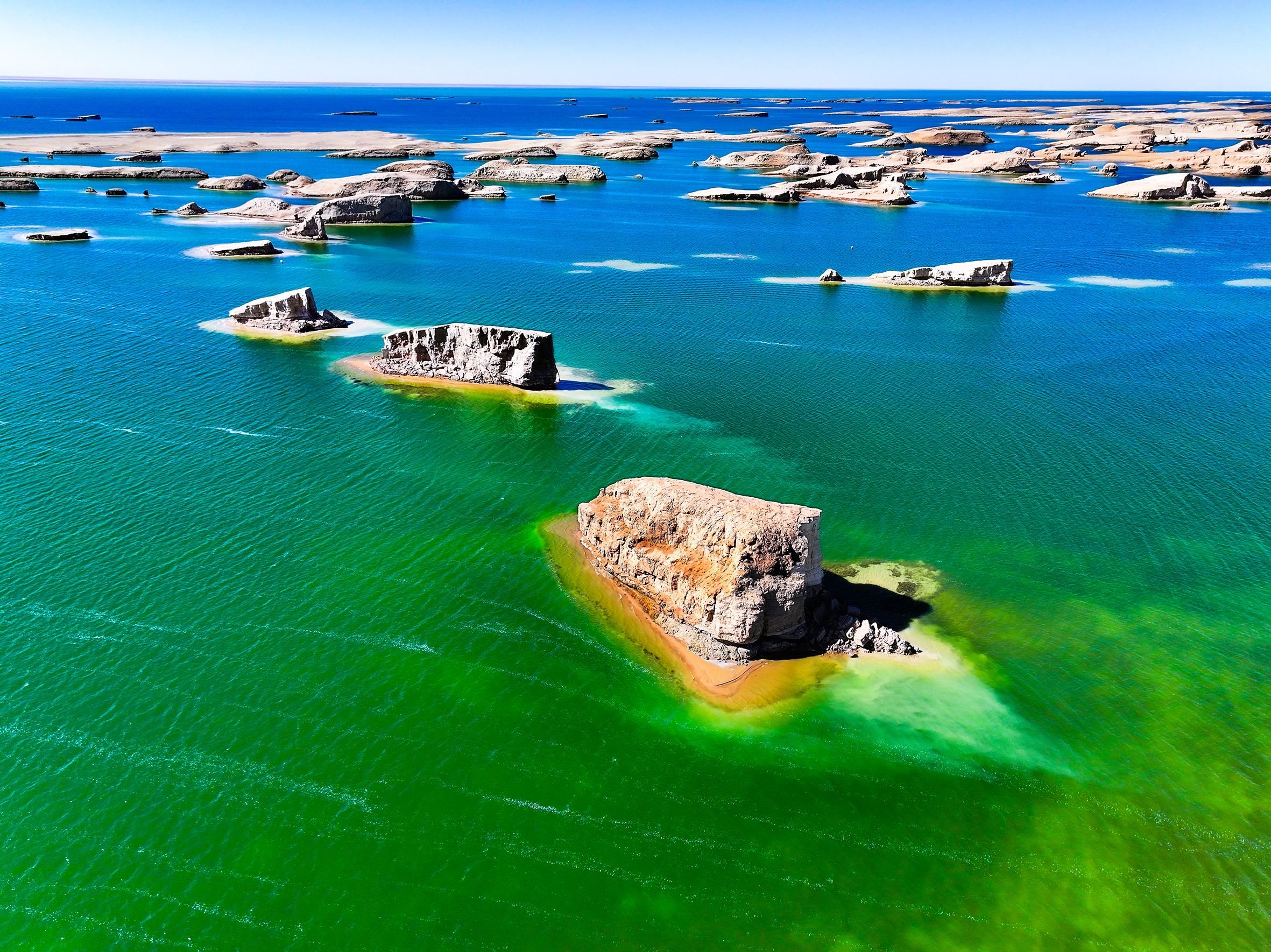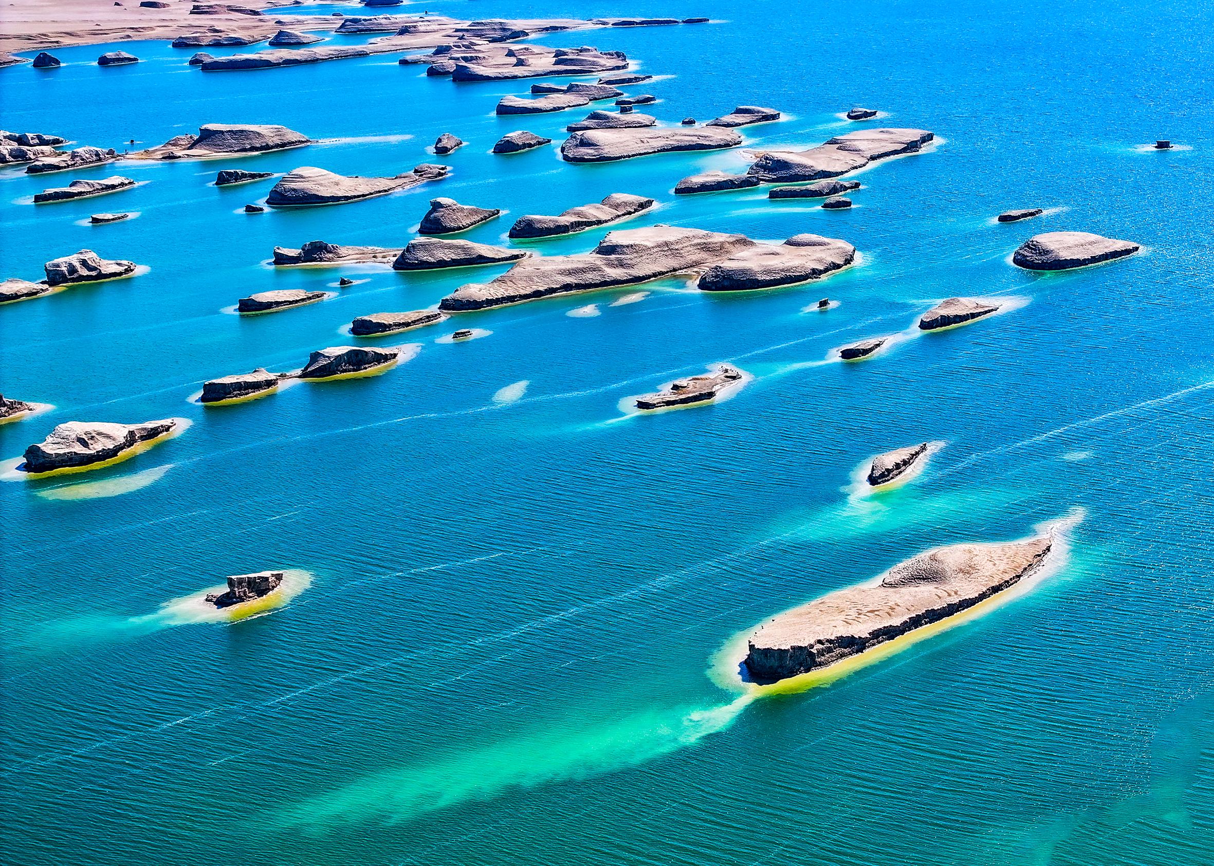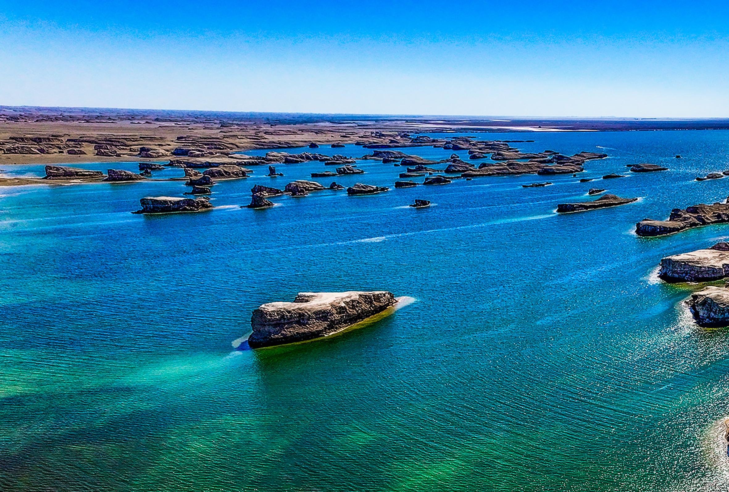 乌素特雅丹地质公园位于青海柴达木盆地西北部,形态丰富多姿的雅丹土丘立于碧波之上,宛如“海上舰队”,风光壮美。