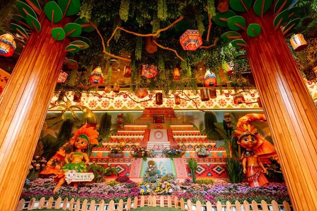 东南亚馆将泰国传统建筑与菊花巧妙结合,搭配泰国传统花卉布置风格和丝绸花布等装饰,营造出浓郁的泰国风味氛围,仿佛让人踏上了一片充满异域风情的热带土地。