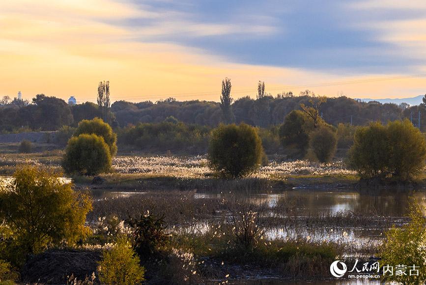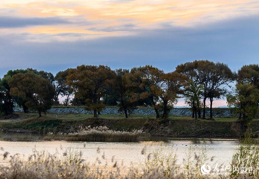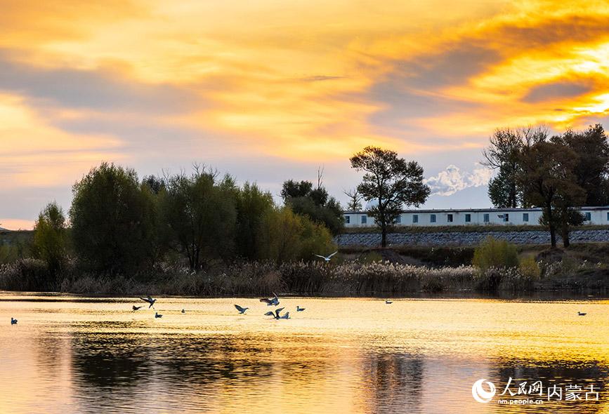 深秋时节的呼和浩特市玉泉区大黑河郊野公园,碧水映红霞,飞鸟舞秋风,勾勒出一幅醉人的秋日画卷。(丁根厚)