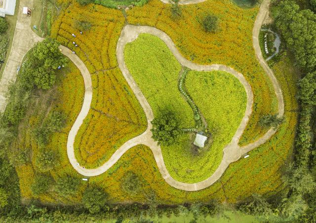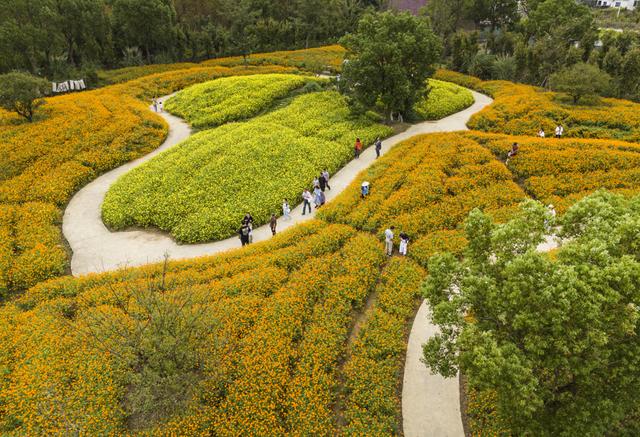 申城“一夜入秋”,金山区朱泾镇花开海上生态园宛如打翻的调色盘。