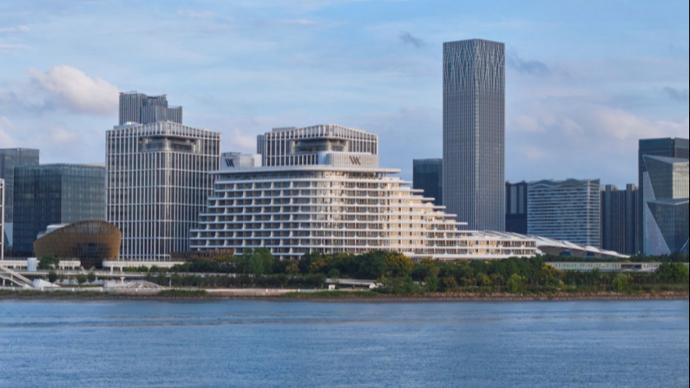 记者看到,前滩华尔道夫酒店坐落于上海新兴活力地标——浦东前滩国际商务区核心区域,坐拥黄浦江畔的绝佳位置。只见酒店建筑外观以流畅的线性结构和跃动的立面形态,生动演绎出邮轮航行于江海的优雅风姿,既呼应酒店临看江景的优越地理位置,也与周边时尚活力与静谧绿意相得益彰。