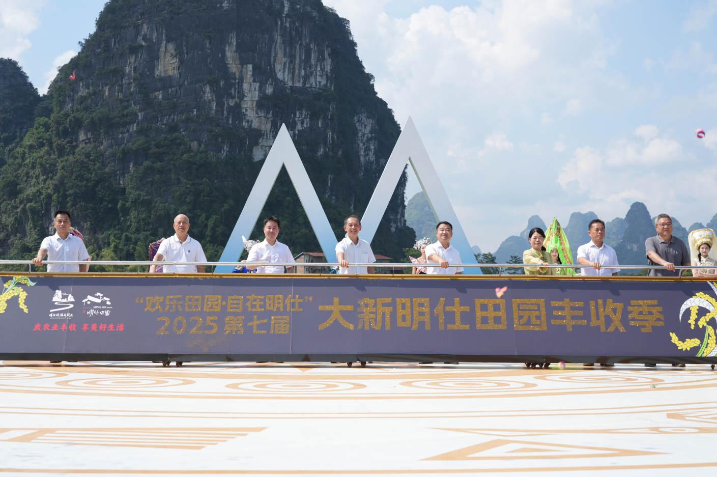 人民网大新10月20日电(记者伍迁)10月18日,第七届大新明仕田园丰收季在广西大新国家级明仕旅游度假区拉开帷幕。“庆农业丰收,享美好生活”——本届丰收节以“听党话·跟党走·庆丰收”为核心导向,延续“欢乐田园·自在明仕”主题,打造一场兼具视觉冲击与情感共鸣的田园庆典。