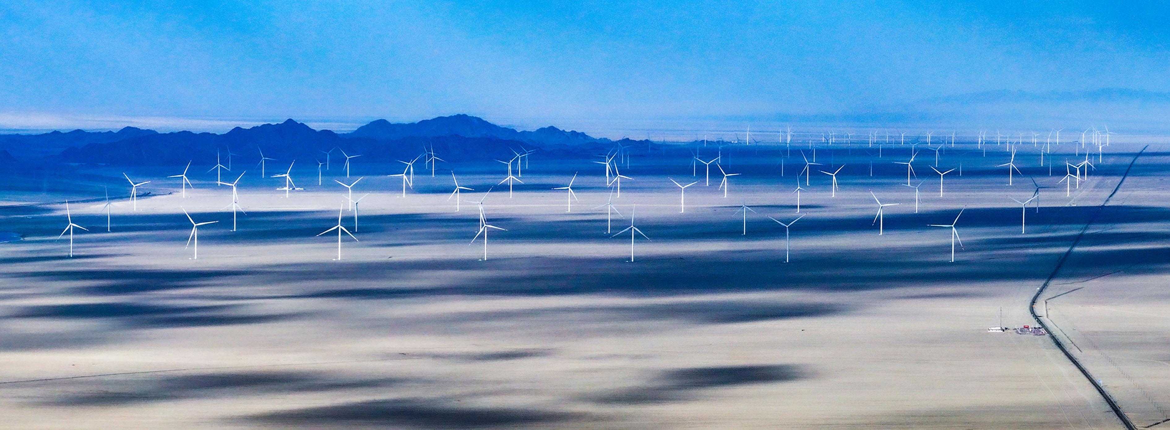 2025年10月15日,青海省海西蒙古族藏族自治州茫崖市冷湖镇,成片的风力发电设施在戈壁滩上迎风旋转,成为一道独特的风景。