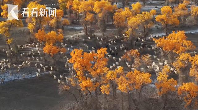 金秋时节,新疆库车市370多万亩胡杨林迎来最美观赏季。在塔里木河沿岸,金灿灿的胡杨错落有致,层林尽染,呈现出一幅梦幻童话般的绝美秋景。