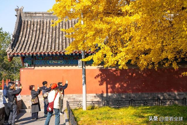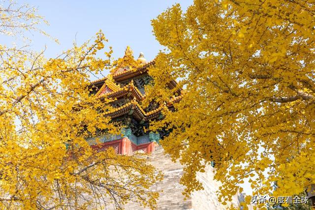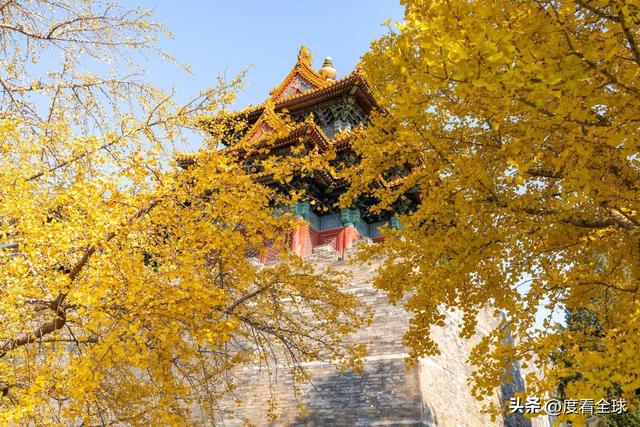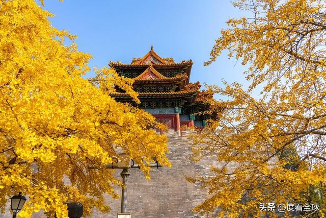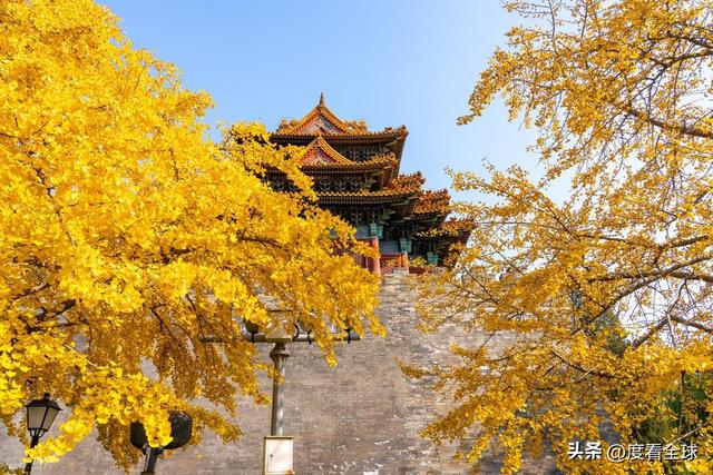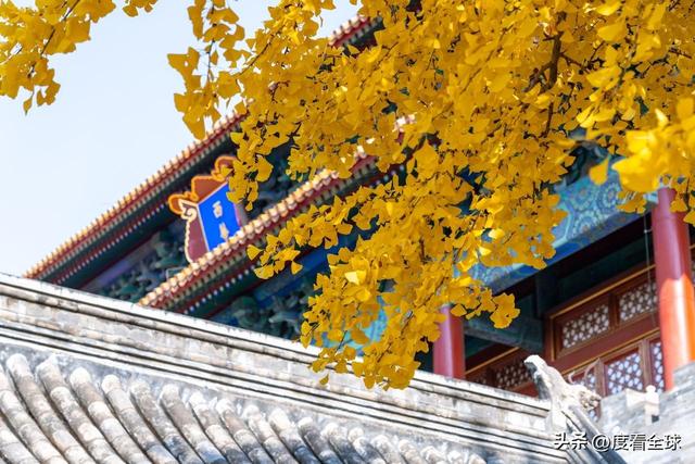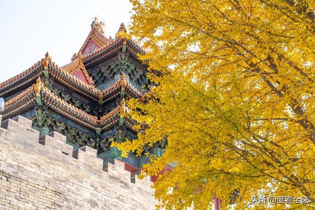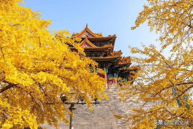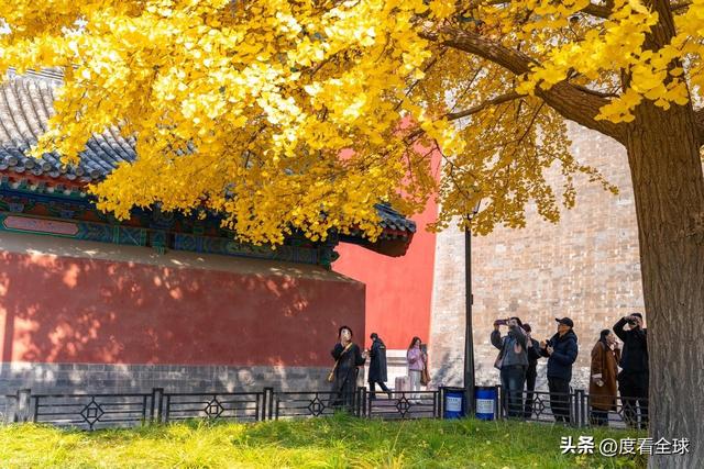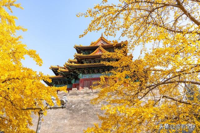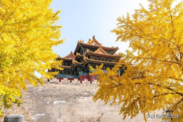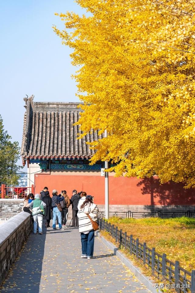 往来的游客举着相机、手机,屏息凝神地捕捉着叶片与红墙琉璃瓦同框的瞬间,生怕错过这转瞬即逝的惊艳 —— 这不是普通的秋日赏叶,而是一场跨越六百年的时空对话,是金黄的银杏叶与古老宫殿共同谱写的秋日赞歌,恰如古人笔下 “日映霜华万点光” 的诗意写照。