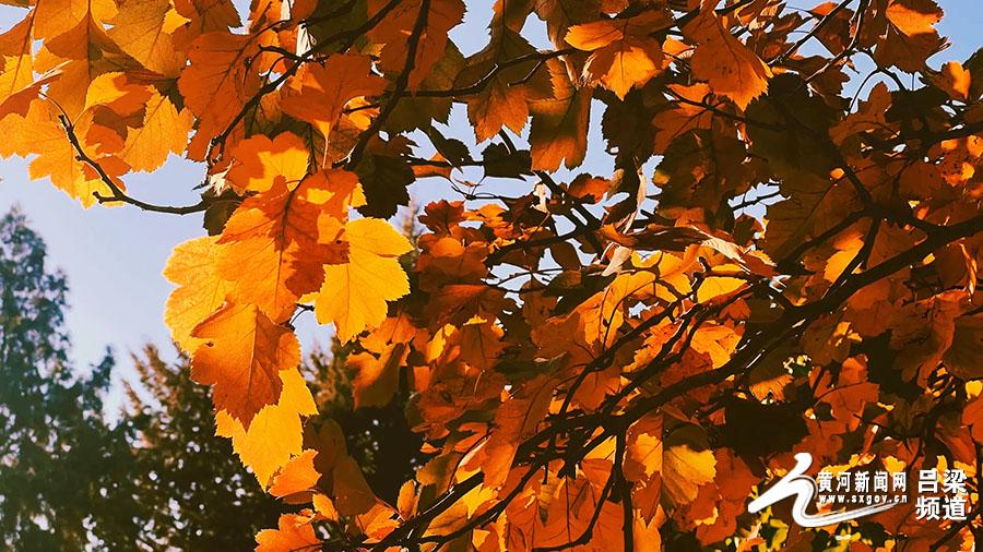 漫步公园步道,目之所及皆是层次分明的冬日画卷。华北落叶松的针叶凝满霜华,风过处冰晶簌簌作响,折射出细碎的光茫,林间尚未完全落尽的黄叶与丹枫,在苍翠松柏的映衬下,晕染出“半青半黄”的诗意过渡,踩在厚厚的落叶上,沙沙声响伴着山间清风,尽显冬日光景的静谧雅致。偶有薄雾从谷底升起,与晨光交织缭绕,将错落的林峦化作水墨长卷,尽显吕梁山的雄奇风骨。